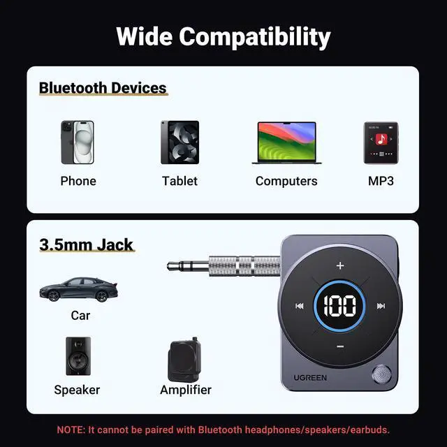 ![Alt view image 6 of 7 - 5.4 Bluetooth Car Adapter, [Noise Cancellation] Aux Bluetooth Receiver for Car, 3.5mm Wireless Audio Receiver for Music/Hands-Free Call/Home Stereo/Wired Speaker, 20H Battery Life](https://c1.neweggimages.com/productimage/nb640/C3H4D2512110MJ7GP99.jpg)