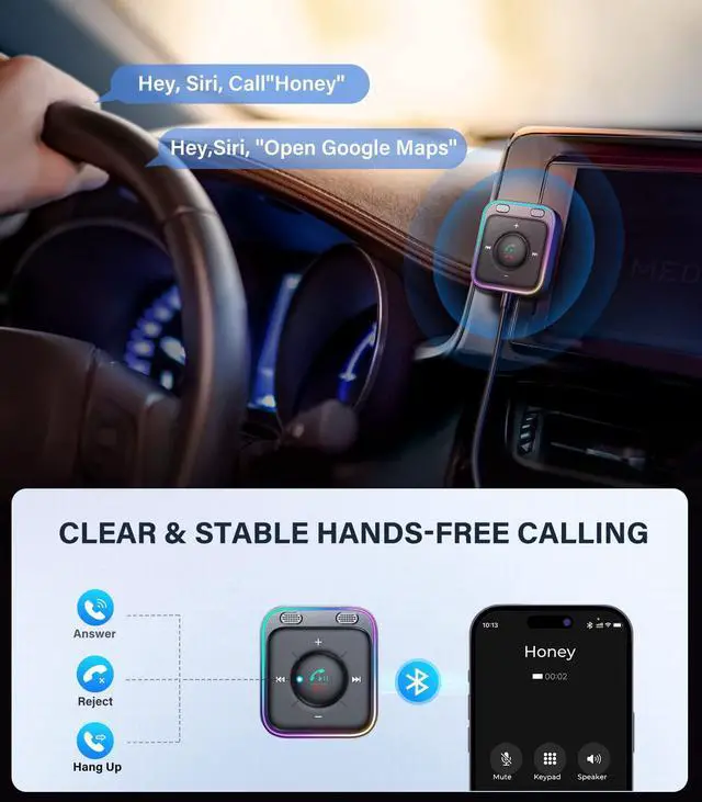 Our Bluetooth receiver is closer to eye level than using your phone closer to eye level, making it easier to change audio tracks, volume, and Siri, allowing you to stay focused on the road while driving.