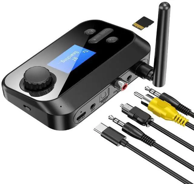 eppfun Bluetooth Transmitter for TV, Audio Adapter Receiver for Home Stereo with Volume Control ON/Off Switch LCD Display 3.5mm Aux/Optical/Coaxial/TFCard