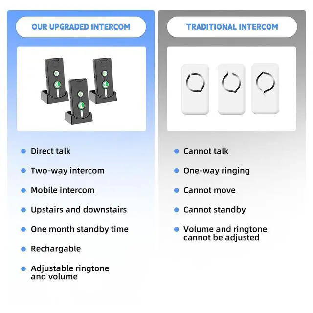• Easy to Use: With just 2 simple channels (A & B), this intercom system simplifies multi-floor communication. Easily switch between channels for crystal-clear, interference-free conversations. And the 3 ringtone and 5 volume are adjustable