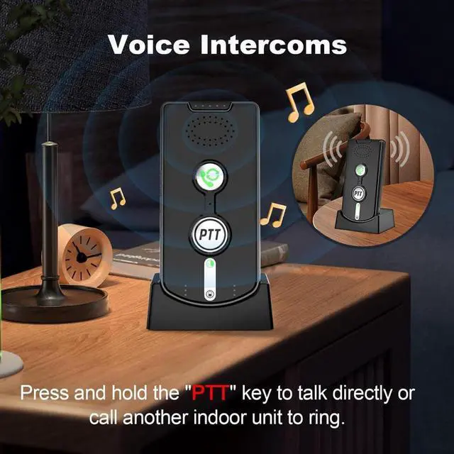 Portable 2-in-1 intercom, any intercom can initiate a call request, and the other intercom will ring, or you can press and hold the "PTT" button to talk directly.