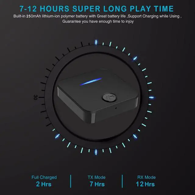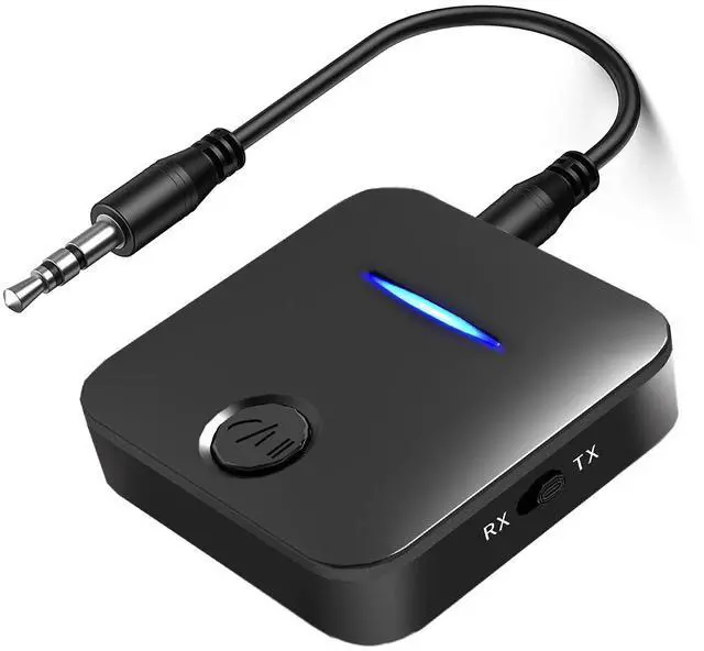 Bluetooth 5.4 Transmitter and Receiver, 2-in-1 Wireless Audio Adapter with Built-in Microphone for Car, TV, Home Stereo, Sound Bar - Hands-Free Calling Low Latency
