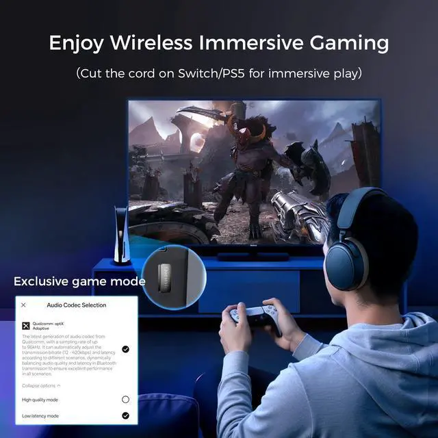 ![Alt view image 5 of 7 - QCC Dongle Pro [MFi Certified] USB-C Bluetooth Audio Adapter with LDAC,aptX Lossless&aptX-Adaptive,Low Latency Bluetooth 5.4 Dongle for PS5,Wireless Lossless Transmitter for PC/Headphones](https://c1.neweggimages.com/productimage/nb640/C5MSD2603240H3DNVDA.jpg)