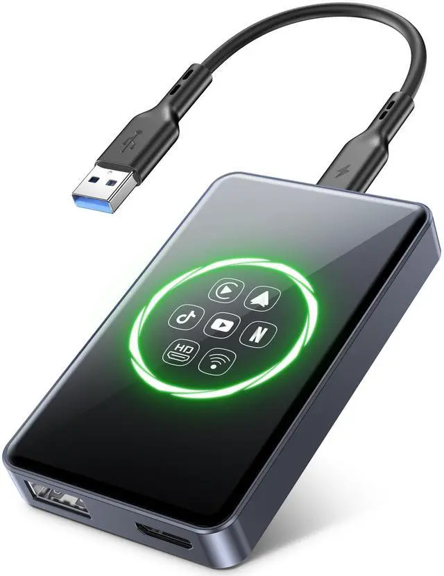 4-in-1 Wireless CarPlay Adapter& Android Auto Wireless Adapter, Magic Video Box Stream Netflix, YouTube, Disney+HDMI Output, USB Drive & TF Card Support Upgrade OEM Wired CarPlay (4+32GB)