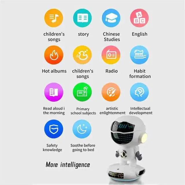 • M80 AI Robot Smart AI Speaker Alarm Clock FM Radio Wireless Bluetooth Speaker RGB Light for Boy Girl Student Gift,1 * AI Robot,White