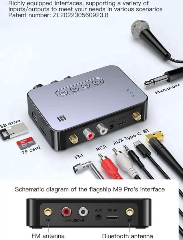 Two-in-one Bluetooth receiving (RX) and Bluetooth transmitting (TX).