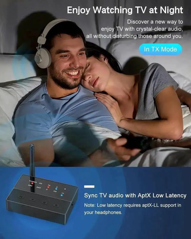 2-in-1 Bluetooth Transmitter Receiver: In TX mode, Transmits non-Bluetooth audio sources like TV or MP3 player to Bluetooth speaker and headphones via 3.5 mm AUX/RCA cable. Transform a traditional or non-Bluetooth TV into a device that supports headphones, improving your listening experience and providing a private, uninterrupted environment. In RX mode, Receives audio from Bluetooth devices and transmits it to non-Bluetooth speakers, stereos, or headphones via 3.5 mm AUX/RCA cable.