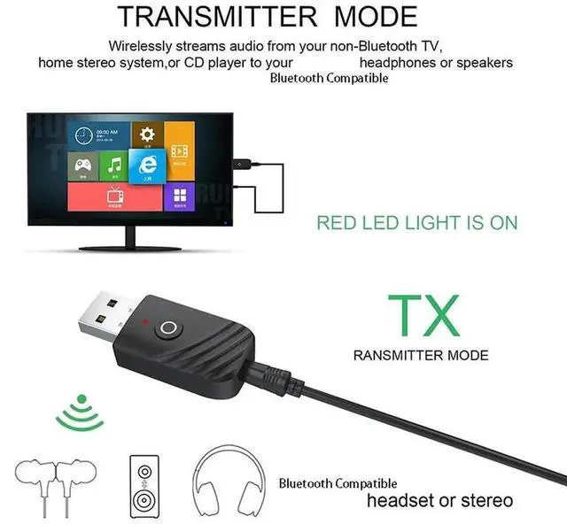 Bluetooth-compatible Dongle 3 in 1 BT 5.0 USB Adapter Stereo Audio Transmitter Receiver for TV Computer Car Earphone Headset