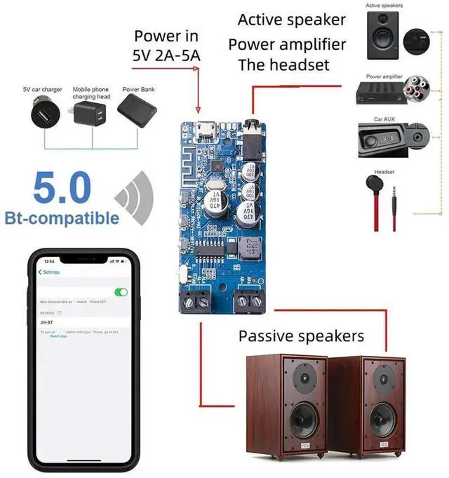 Bluetooth-compatible 2x5W Audio Receiver Board 5.0 Wireless Stereo Music Module