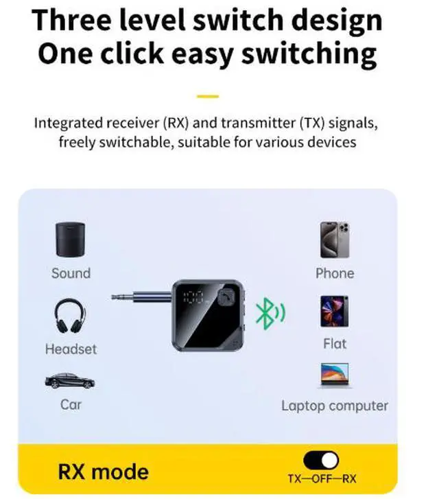The JS13 Bluetooth 5.4 Audio Adapter is the ultimate wireless audio solution for travelers and home users. Use Transmitter mode to send audio from your TV, car, or airplane to Bluetooth headphones. Use Receiver mode to make wired speakers or stereos Bluetooth-enabled. All in a compact, long-lasting device.
