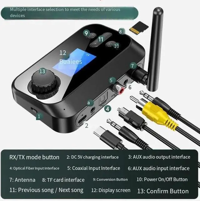 The C41 Bluetooth Audio Adapter is the most versatile wireless solution for home audio. With optical (Toslink), coaxial (S/PDIF), and 3.5mm AUX inputs, it connects to any TV, soundbar, or stereo. Use as transmitter to send audio to Bluetooth headphones, or as receiver to make wired speakers wireless. Plus, built-in TF card player for standalone music.
