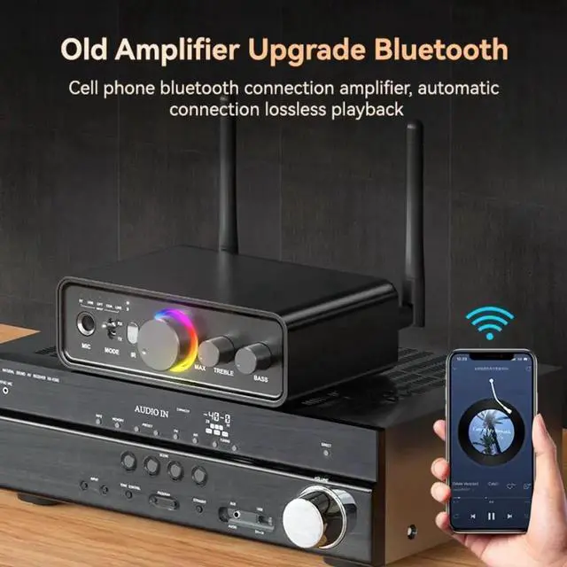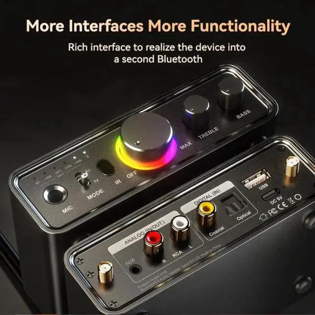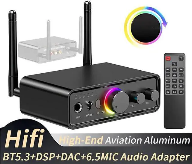 Hitoor RGB Bluetooth 5.3 Audio Transmitter Receiver for Home Stereo TV, HiFi Wireless Bluetooth Low Latency Audio Adapter, Support DAC/AUX/RCA/USB/Coaxial/Optical/ 6.5MM Microphone Karaoke Hifi DSP