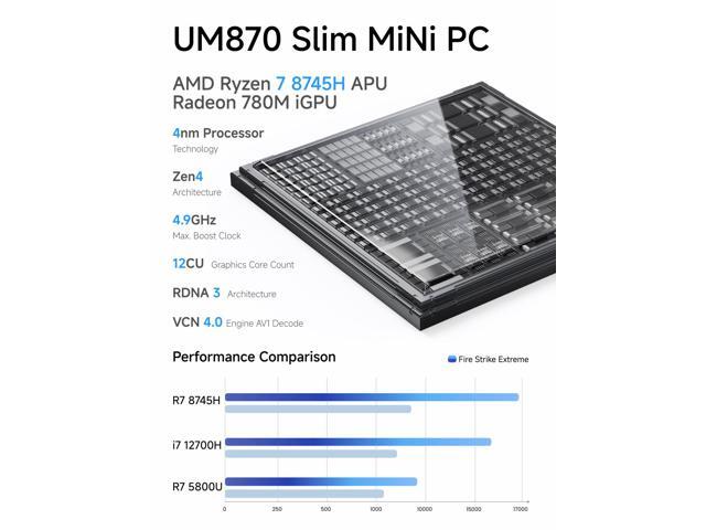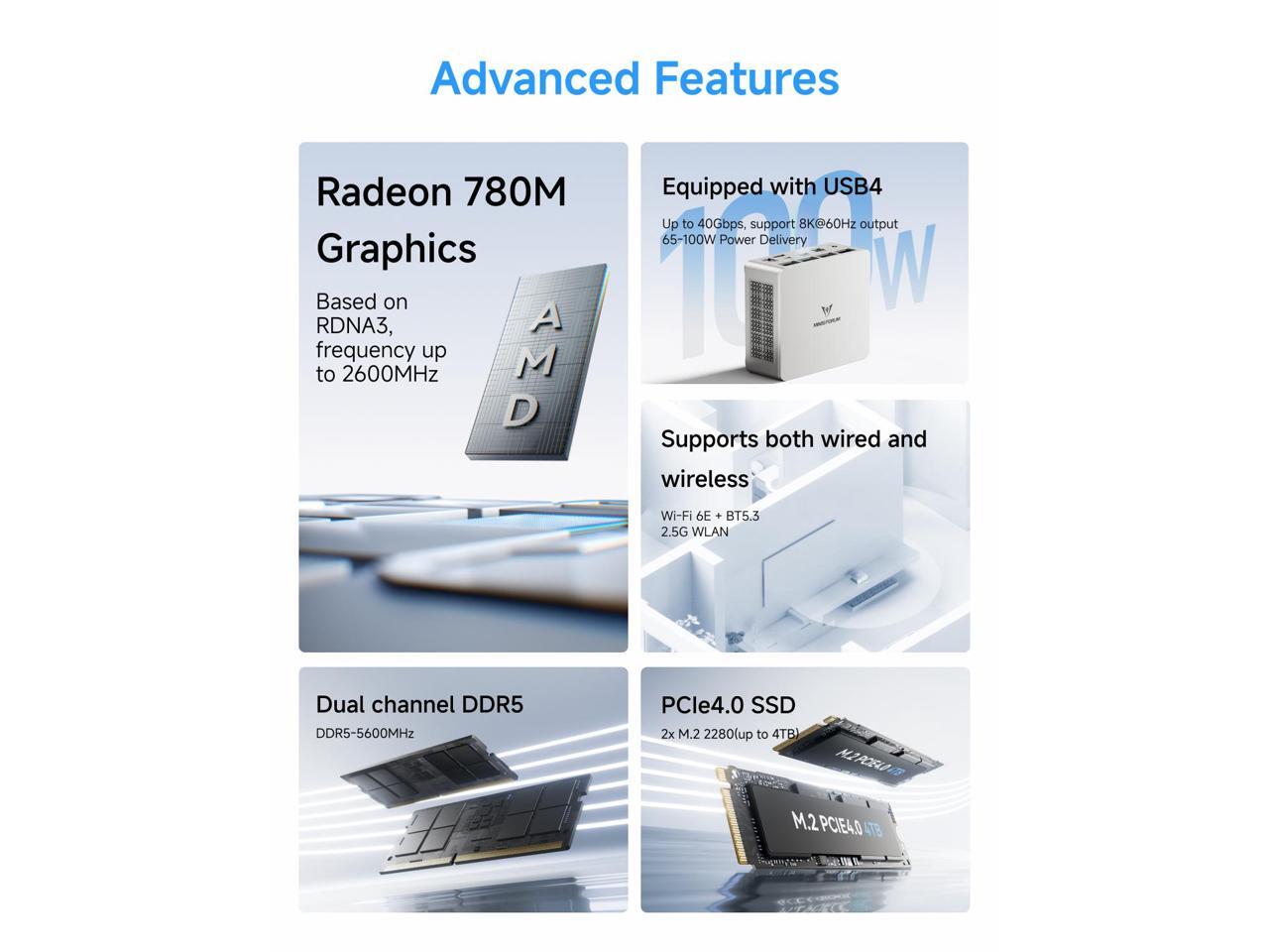 - Exceptional Processing Power: This Mini PC is powered by the AMD Ryzen 7 8745H processor, featuring 8 cores and 16 threads, with a maximum boost clock of up to 4.9GHz.