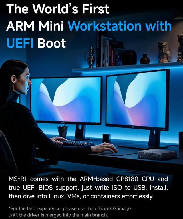 MINISFORUM MS-R1 ARM Mini Workstation CIX CP8180 Processor(12C/12T) 64GB LPDDR5(ECC Support) 1TB SSD Mini PC, HDMI/2xUSB-C Triple Display, 2x 10G Lan Port, 8xUSB Port, WiFi6E, BT5.3 Debian OS Micro PC