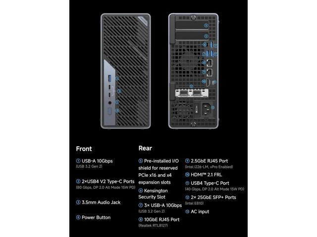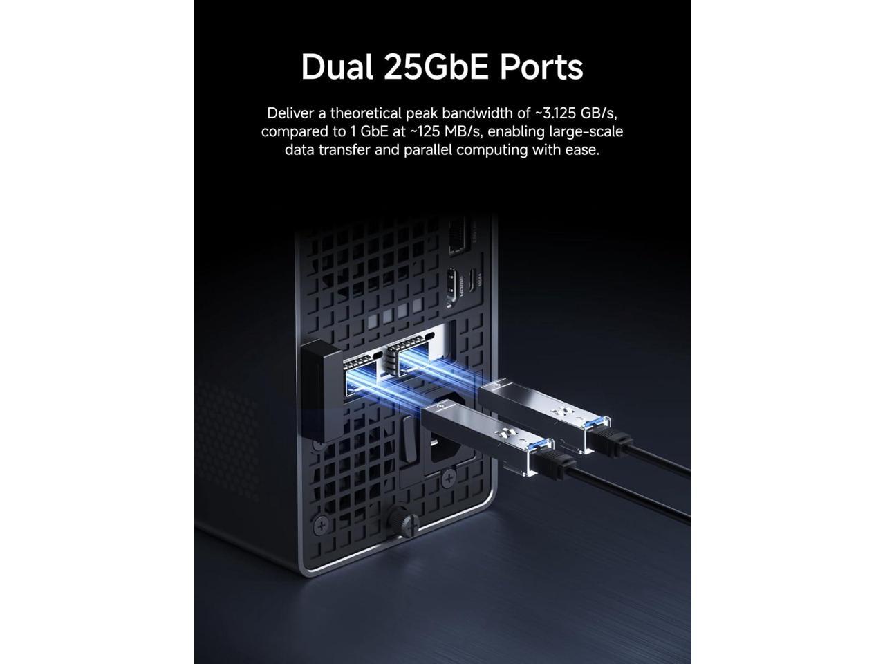- Features advanced connectivity with two 25G SFP+ ports, a 10G RJ45, and a 2.5G RJ45, enabling ultra-fast, stable network access for data-intensive applications and seamless integration into high-speed environments.