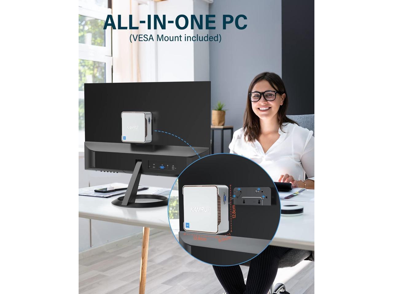 - 4.PORTABLE AND COMPACT MINI COMPUTER---Compared to traditional desktop pc, mini computer(with VESA bracket) with high performance integrated chip and compact size is perfect for placing in small spaces or even carrying out in a backpack at any time(5x 5x 2 inches)