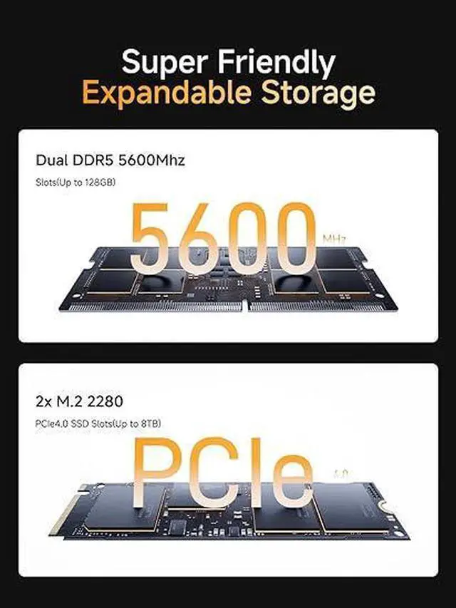 Large Storage Capacity, Easy ExpansionThe M1 Pro Mini Computers come equipped with 32GB DDR5-5600MHz RAM (dual SO-DIMM slots, expandable up to 128GB) and a 512GB M.2 SSD. It features dual M.2 2280 PCIe 4.0×4 slots, supporting up to 4TB per SSD (total up to 8TB)perfect for high-speed data processing, rapid file transfers, and faster system responsiveness in demanding workloads.