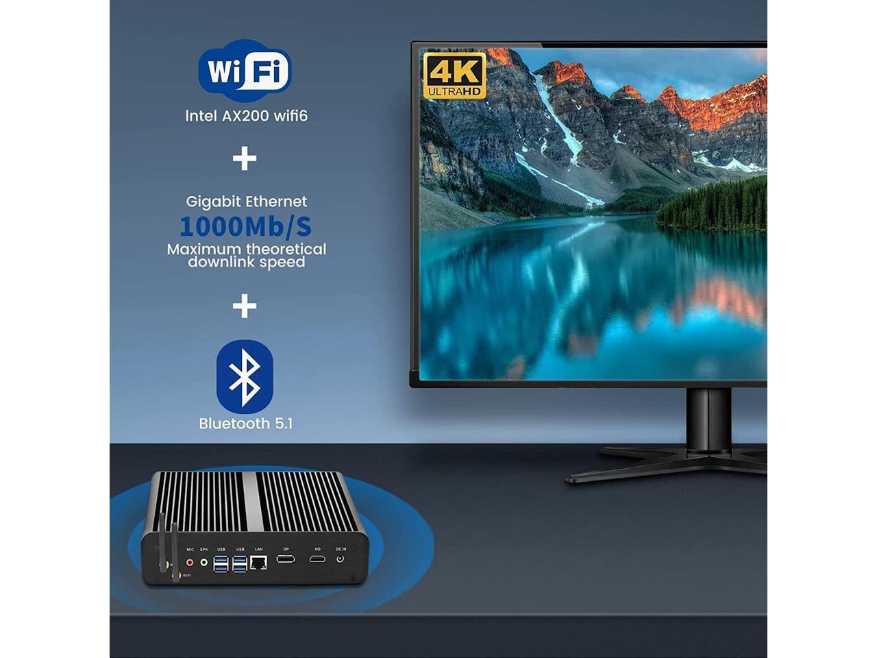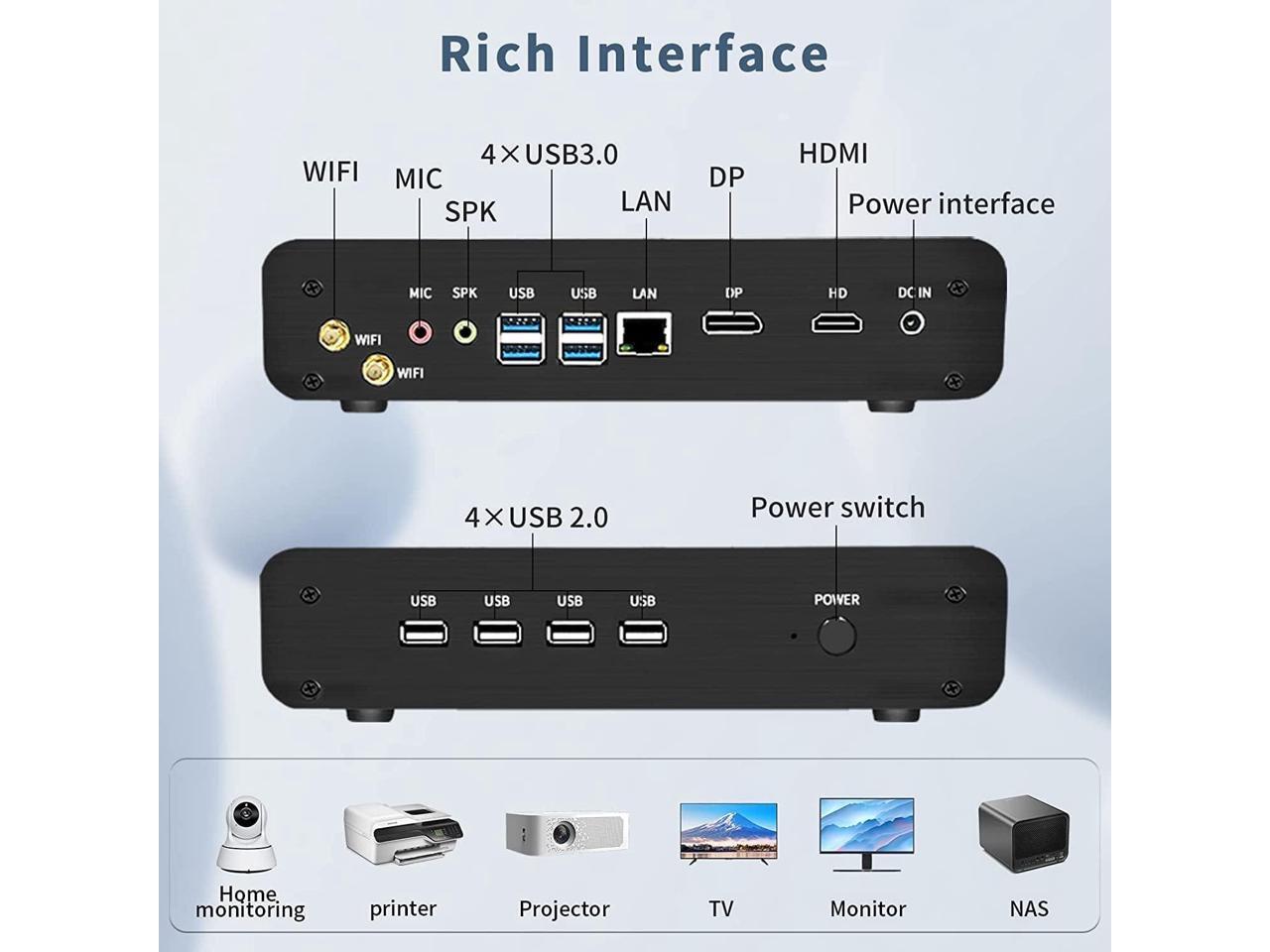 - [Superior Connectivity] Mini PC is equipped with 4 x USB 3.0, 4 x USB 2.0, 1 x HDMI, 1 x DP port, 1 x SPK&MIC, 1 x RJ-45 Giga LAN port, 1 x DC IN. Built-in WiFi 6, Bluetooth 5.1.