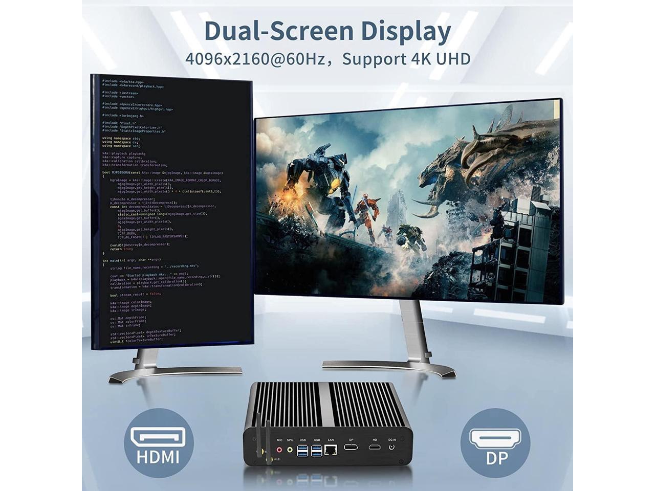 - [Support 4K HD Dual Display] Mini PC supports easy connection to dual-monitors via HDMI+DP ports, Support 4096x2160@60Hz HD output, Build in 28W Iris Xe Graphics card delivers powerful graphics processing