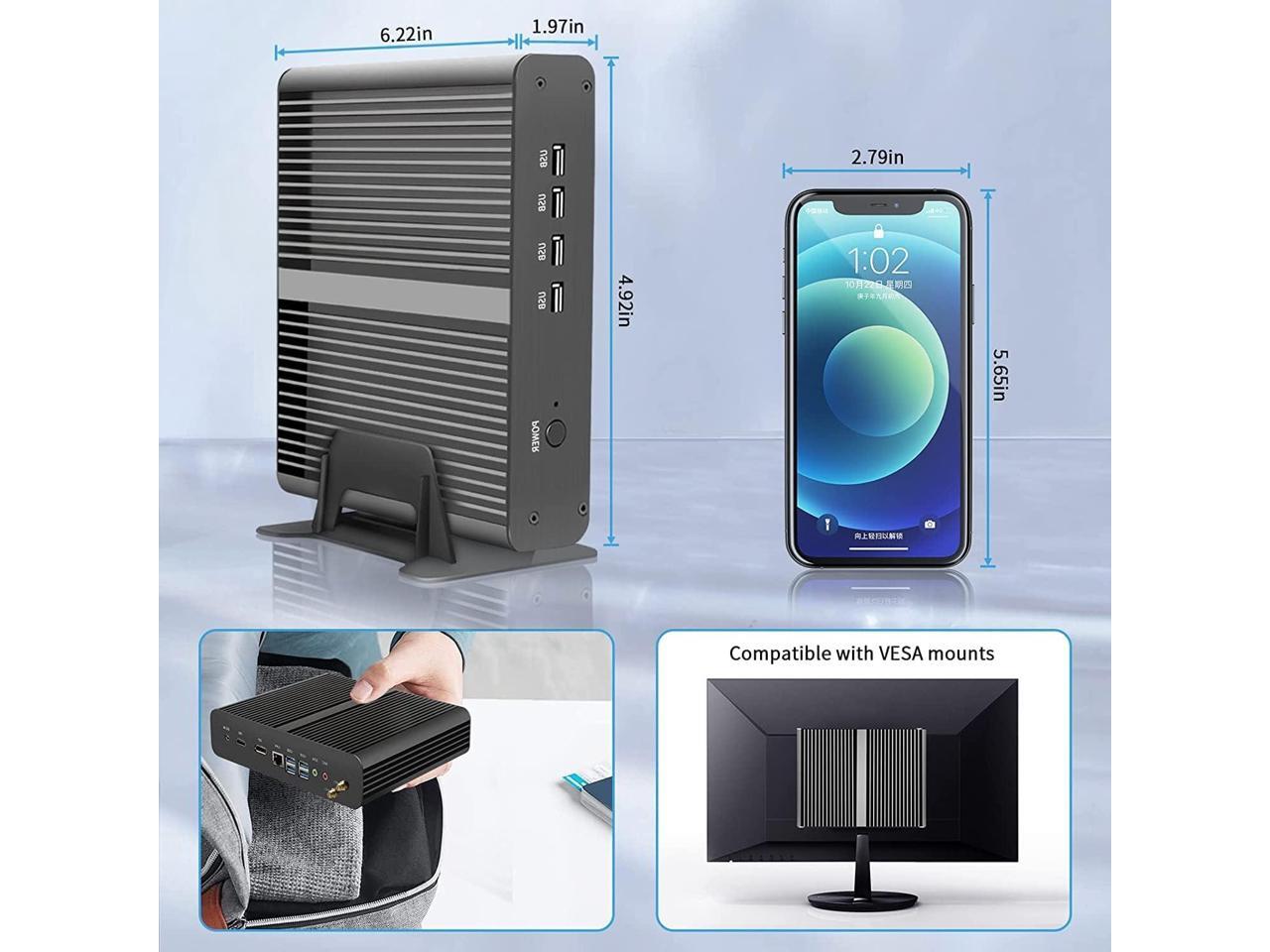 BOESIIPC Fanless Mini PC i7-1165G7 Windows 11 Pro, Desktop Computer 8G DDR4 RAM 512G NVME SSD, Iris Xe Graphics, HDMI, DP, Dual 4K UHD, WiFi 6, Bluetooth 5.1 for Home/Office