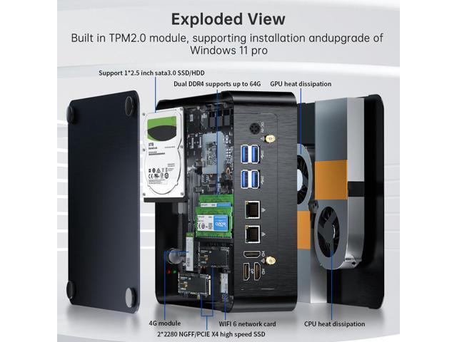 - Mini PC Small and Powerful- It features 2 x so-dimm DDR4 slots with dual-channel support, upgradable to a maximum of 64GB. It also comes with 2 x M.2 SSD NVME PCIE3.0 2280 slots (upgradable to 2x2TB).