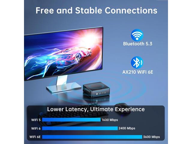 - WiFi 6E and Bluetooth 5.3: Built-in WiFi 6E and Bluetooth 5.3, support wireless Gigabit, transmission speed up to 2.4Gbps, enable faster and more stable without network congestion.