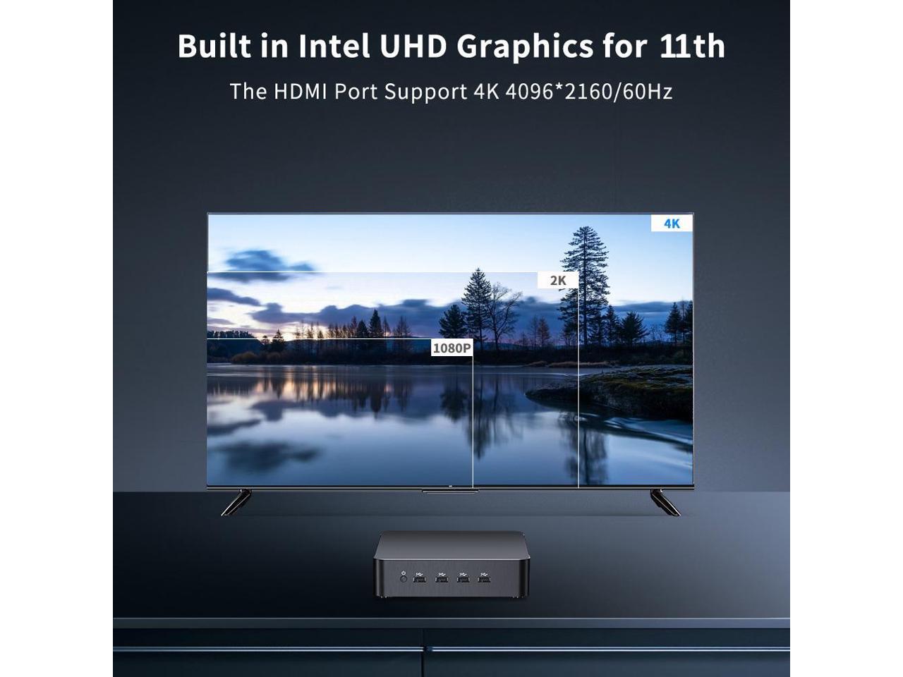 - Dual Display output & Stable Operation: Mini PC equipped with Intel UHD Graphics for 11th Processor, HDMI2.0 support 4K@60Hz. You can connect two display at the same time via the HDMI+VGA port.