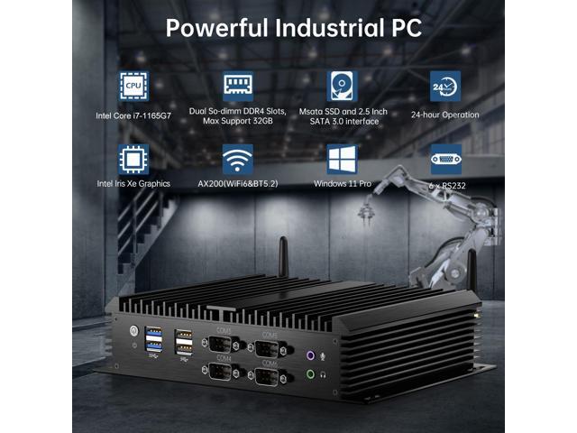 BOESIIPC Industrial Pc, Fanless Mini PC Windows 11 Pro, HTPC i7-1165G7 up to 4.80 GHz, 8G DDR4 RAM 512G SSD/COM/USB 3.0/4K/HDMI/VGA/2.5G LAN/WIFI6/BT 5.2/Full Metal Case/Auto Power On