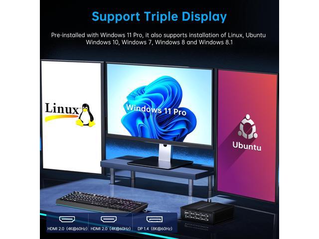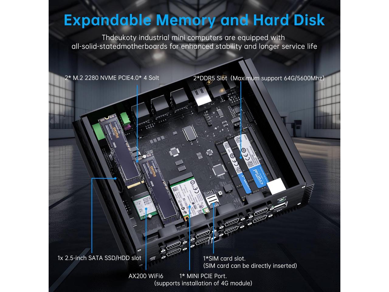 - [DDR5 RAM & Pcie 4.0 SSD] Powerful mini computer, equipped with 2xDDR5 RAM slots[supports up to 64GB(5600Mhz) RAM] and 2xM.2 Pcie 4.0 NVME SSD slots(supports up to 2TB SSD)