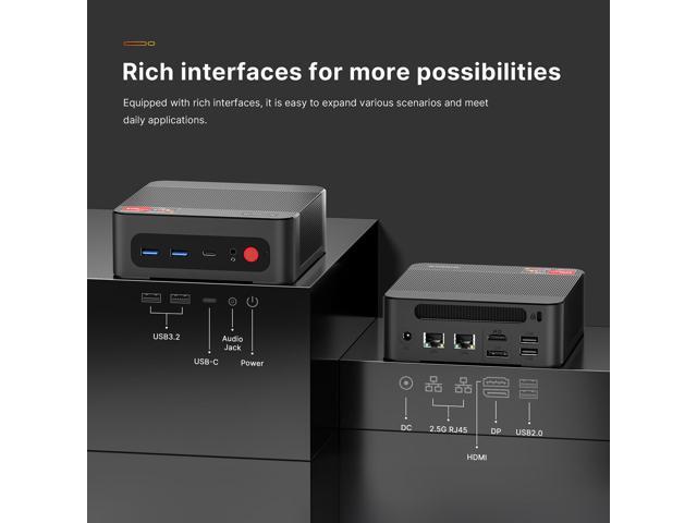 - [WiFi 6E&BT 5.2]Mini PC with Triple Band WiFi 6E (2.4GHz, 5GHz, 6GHz), which is faster than Wi-Fi 5, and is also equipped with Bluetooth 5.2 for easy wireless device connection
