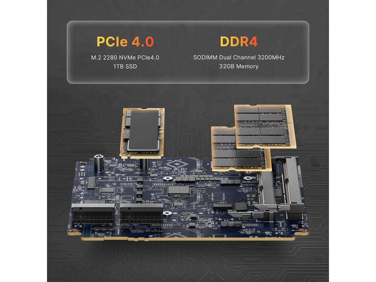 - [Dual SSD Slot & Dual Channel RAM]Mini PC is equipped with dual channel 16G*2 DDR4 and 1TB M.2 NVMe SSD, which allows the small PC to run several high performance operations simultaneously,You can add an SSD(no included) when you need more space