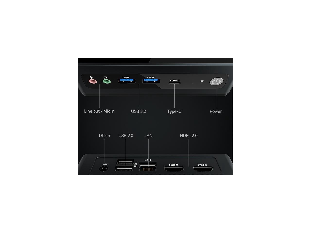 - [Versatile Connectivity&Storage Flexibility] With 2xUSB3.2, 2xUSB2.0, 1xLAN, 2xHDMI, USB-C, Line-out, and Mic-in ports, it offers ample connectivity options.Featuring an M.2 slot for NVMe/SATA SSD, you can easily expand storage capacity as needed.