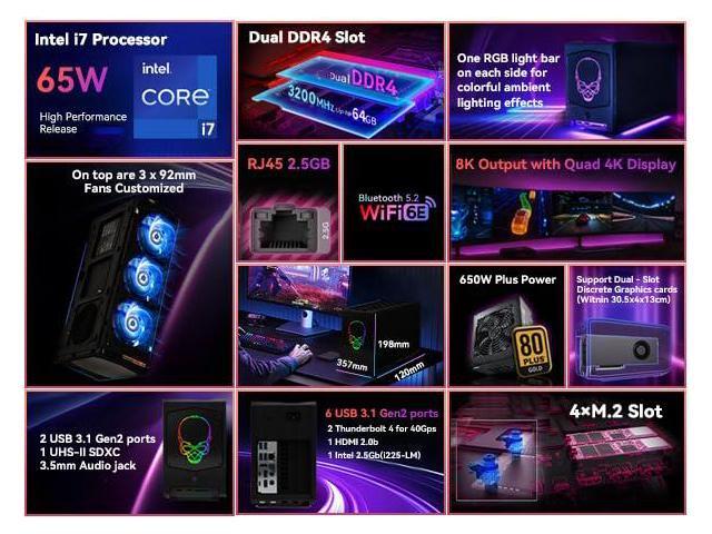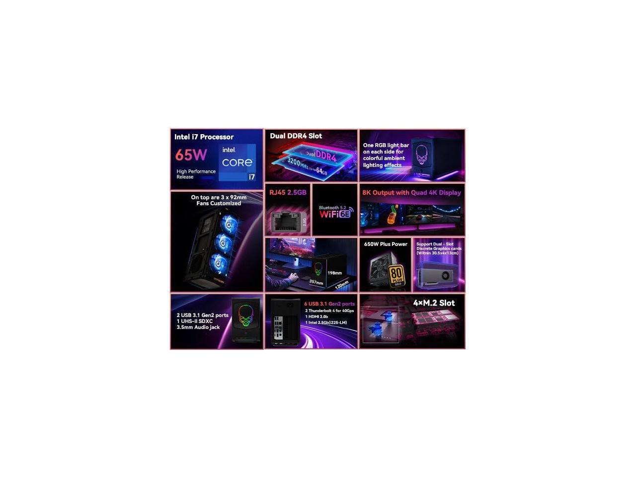 BRENUC11BTMi7 Mini pc gaming , i7-11700B 4.9GHz,Discrete GPU Ready (PCIe4.0 x16 slot 12"),4K Gaming, 32GB RAM 1TB SSD, Triple 4K Display, WiFi 6E & 2.5G LAN,for Serious Streaming & Work