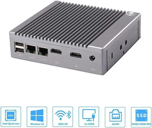 Desktop Computer Fanless Mini PC Windows 10 OEM/Linux with Intel Celeron N2940 Quad Core CPU, Dual Lan, Dual HD Port, 4G RAM 32G SSD 2GB DDR3 32GB