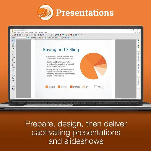 Prepare, design, then deliver captivating presentations. Slideshows, proposals, demos, and interactive reports are all made easy with Presentations™ 2021. Compatibility with Microsoft PowerPoint files and wireless remotes ensure efficiency.