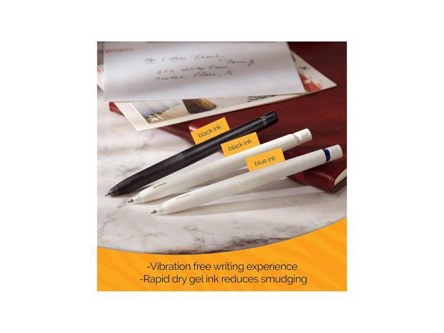 - Smooth-writing gel ink pens for any task. Pens aren't just visually stunning: they're meticulously engineered to eliminate rattles and vibrations, providing a stress-free writing experience. Includes six pens per pack (four with black ink and two with blue) and four refills (two with black ink and two with blue).