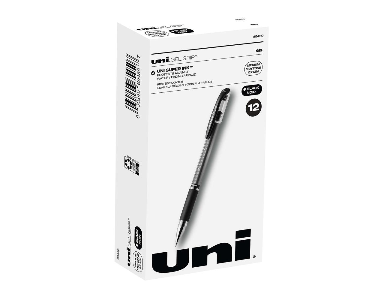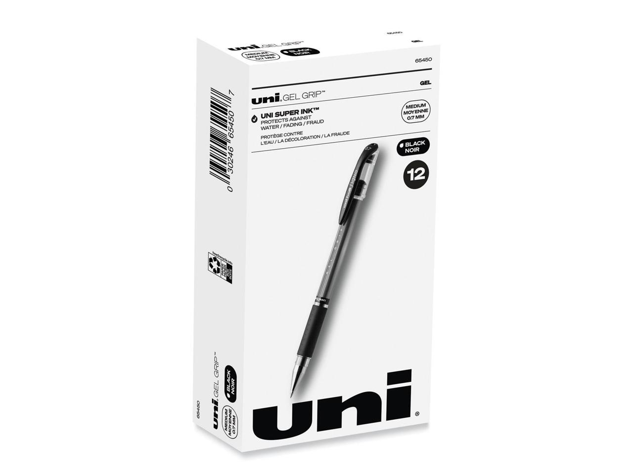 uni-ball Signo GRIP Stick Gel Pen 0.7mm Black Ink Silver/Black Barrel Dozen