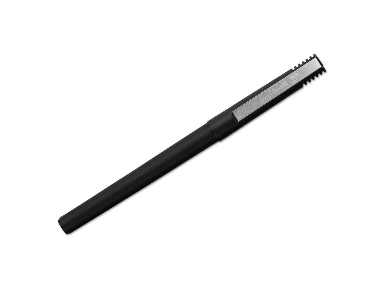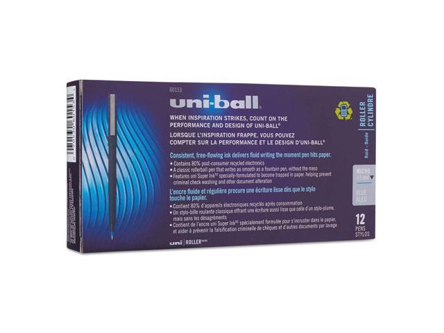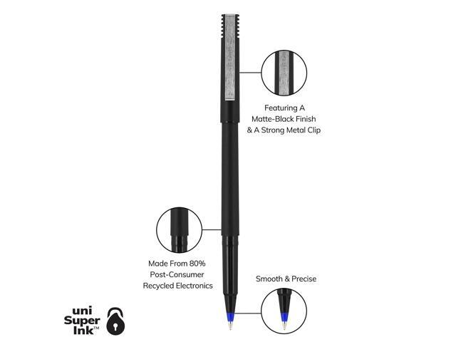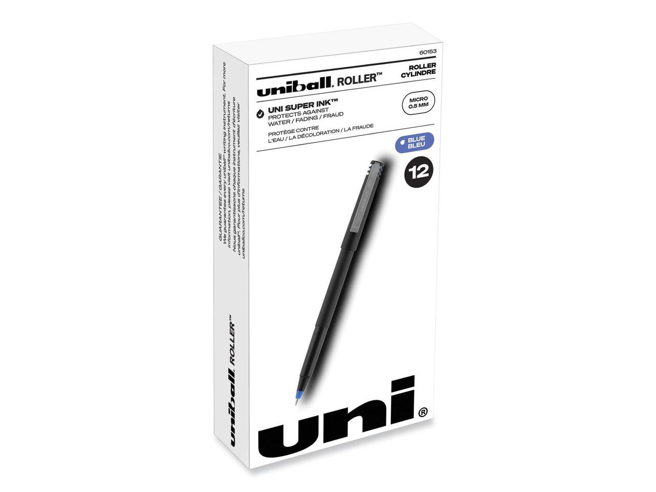 uni-ball Stick Roller Ball Pen Micro 0.5mm Blue Ink Black Matte Barrel Dozen