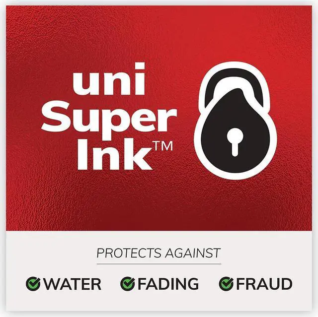 - Comfort grip pens have uni Super Ink that protects against water, fading and fraud.