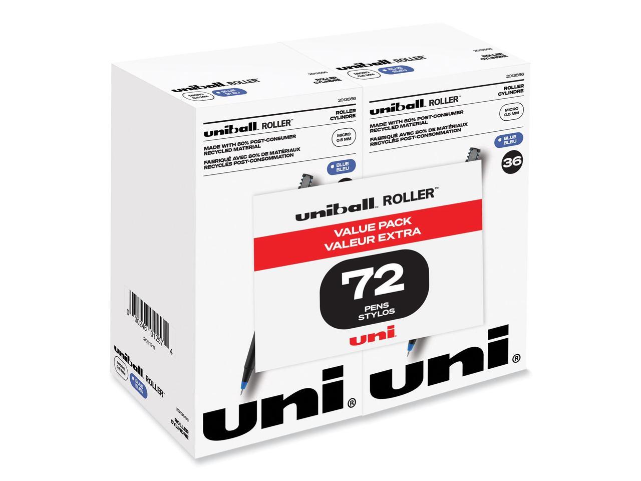 uni-ball Stick Roller Ball Pen Micro 0.5mm Blue Ink Black Barrel 72/Pack 2013566