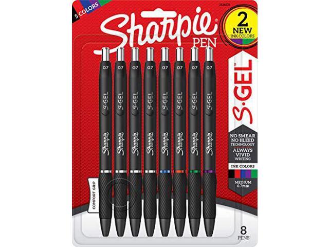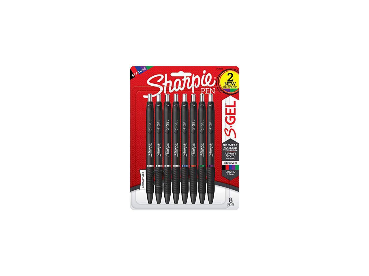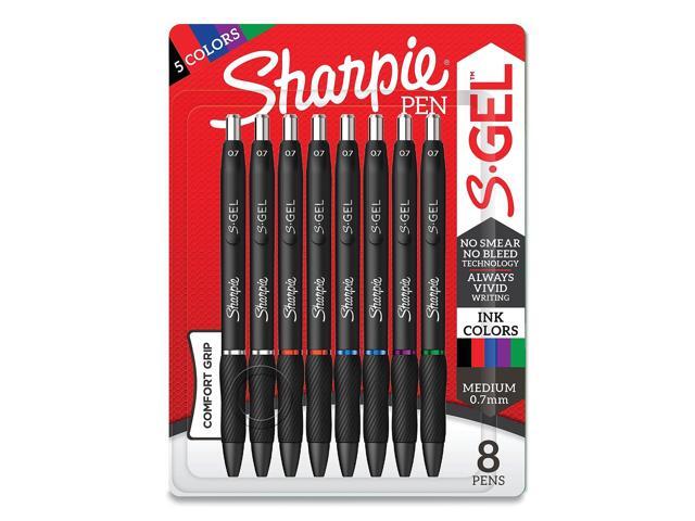 Sanford Sharpie S-Gel High-Performance Gel Pen Retractable Medium 0.7 mm Five Assorted Ink Colors Black Barrel 8/Pack 2126231