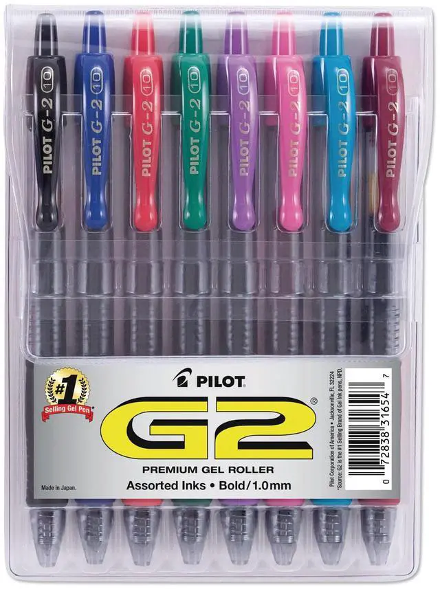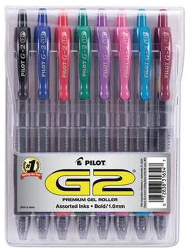 Make striking strokes with this 8-pack of Pilot G2 1.0mm bold-point assorted-ink retractable gel pens.