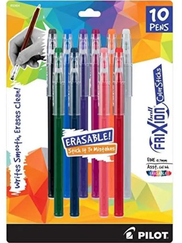 Enjoy bright, vibrant writing with this 10-pack of Pilot FriXion Ball ColorSticks fine-point assorted erasable gel-ink pens.