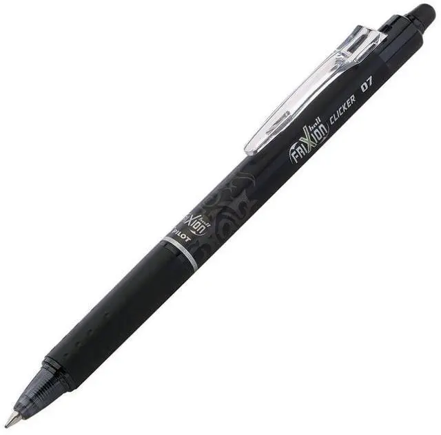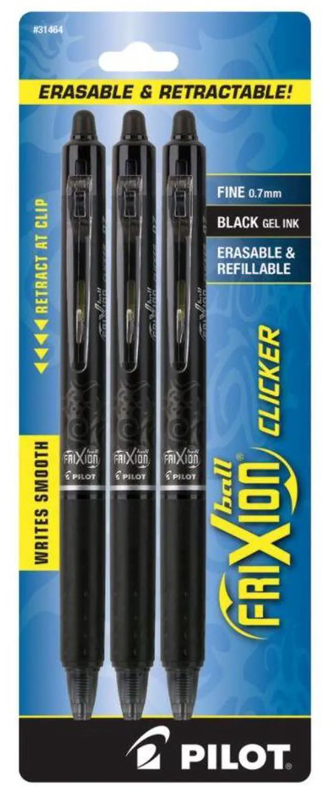 Pilot® FriXion Clicker Erasable Gel Pens, Fine Point, 0.7 mm, Black Barrels, Black Ink, Pack Of 3