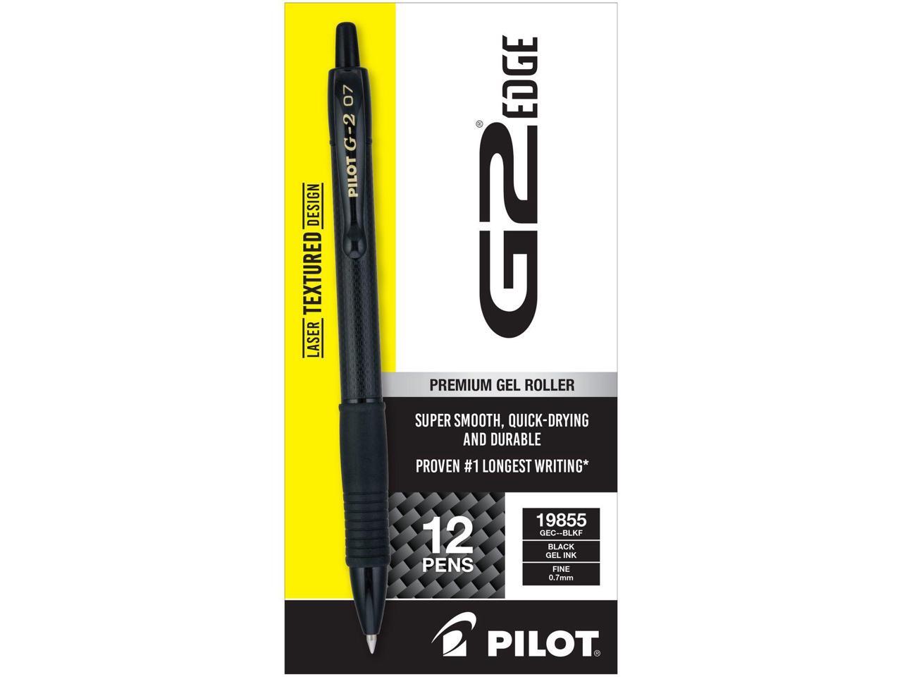 G2 Edge Premium Gel Pen Retractable Fine 0.7 mm Black Ink Black Barrel Dozen 19855