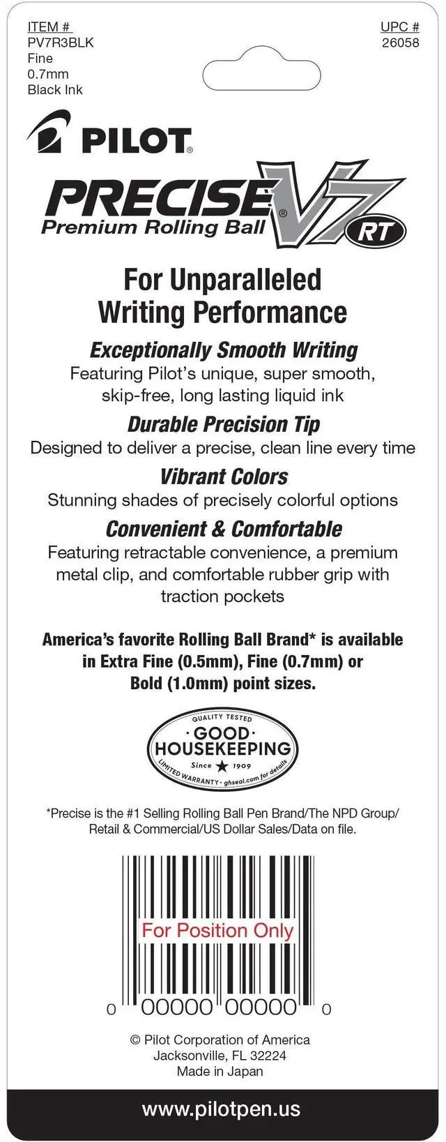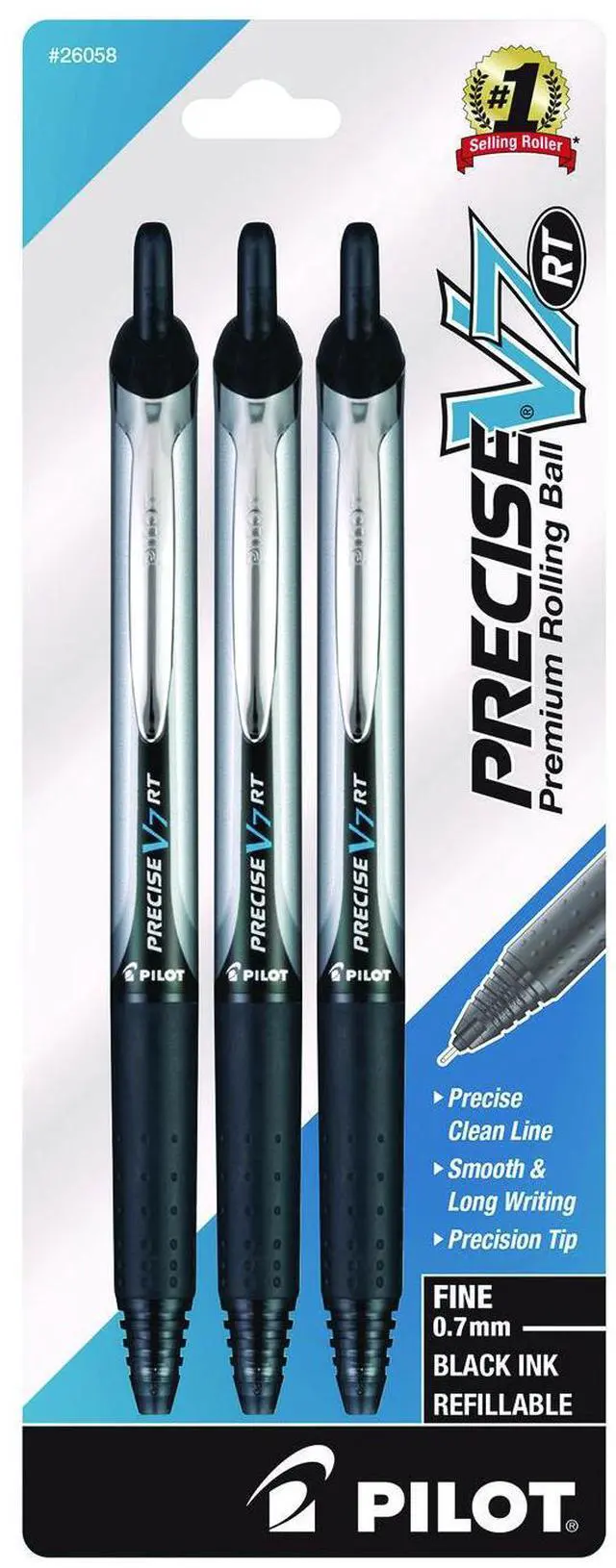 PILOT Precise V7 RT Liquid Ink Rolling Ball Pens Fine Point .7mm 3 Pack Black