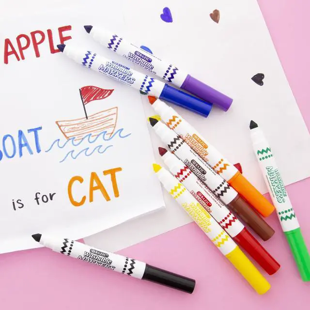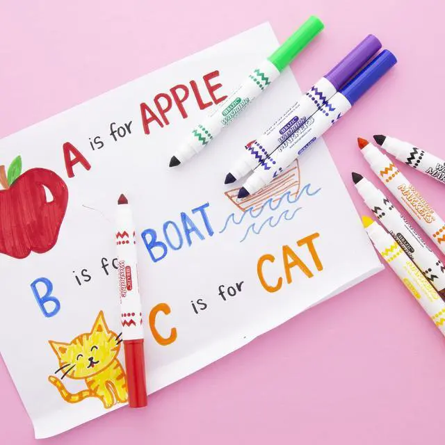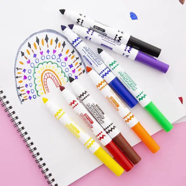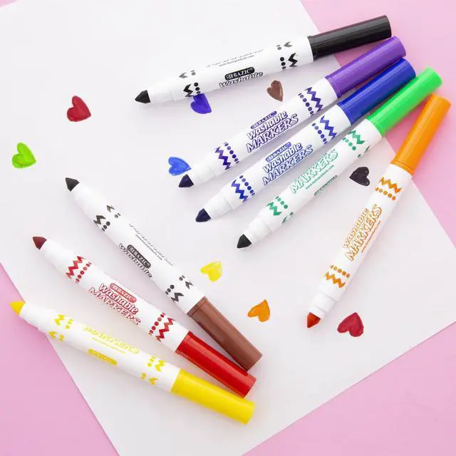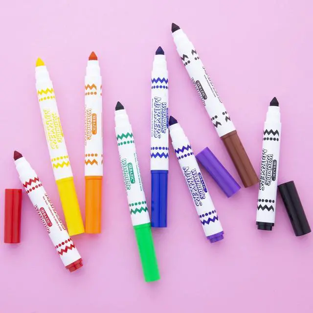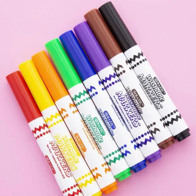 BAZIC 8 Colors Broad Line Jumbo Washable Markers, Case Pack of 24