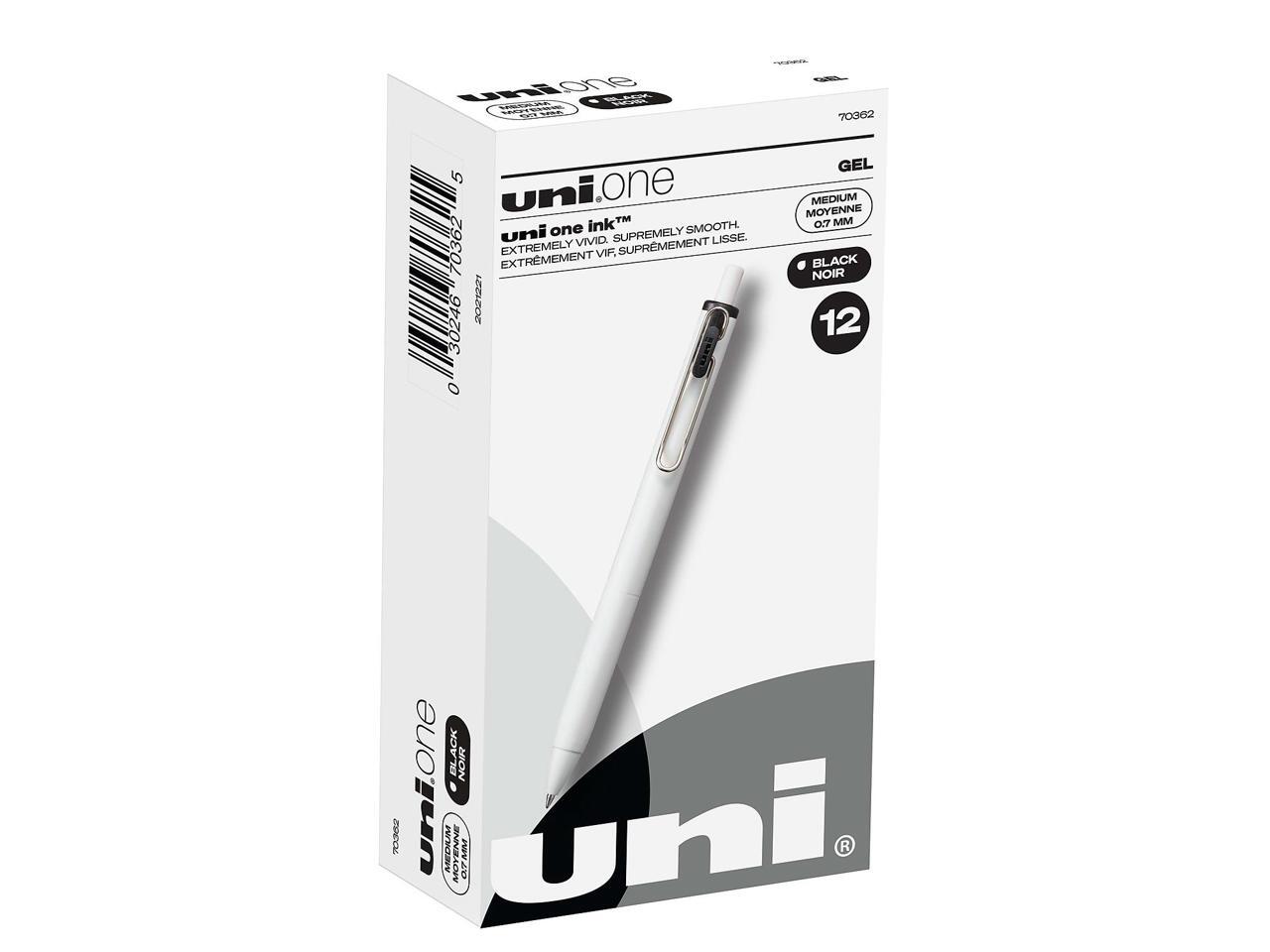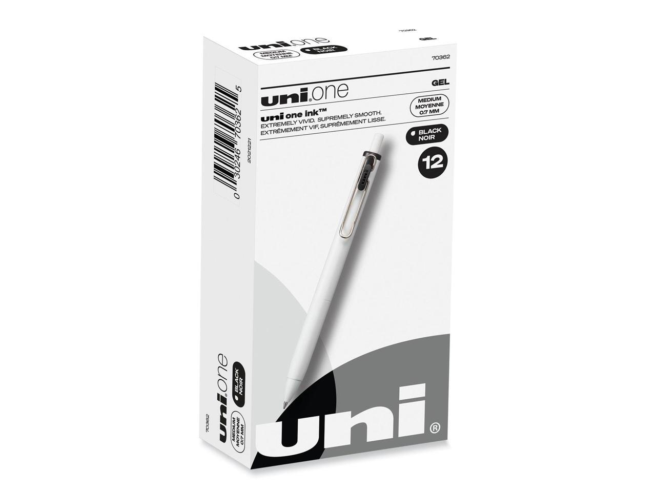 uniONE Gel Pen Retractable Medium 0.7 mm Black Ink White/Black Barrel Dozen 70362