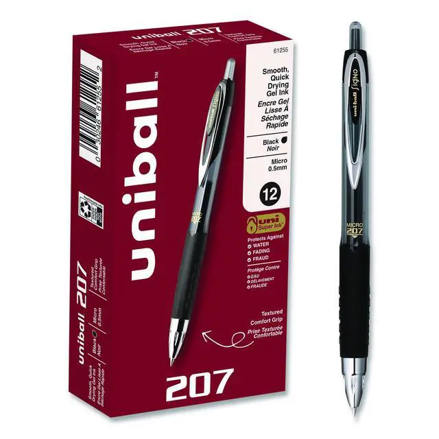 Signo 207 Gel Pen Retractable Fine 0.5 mm Black Ink Smoke/Black Barrel Dozen 61255
