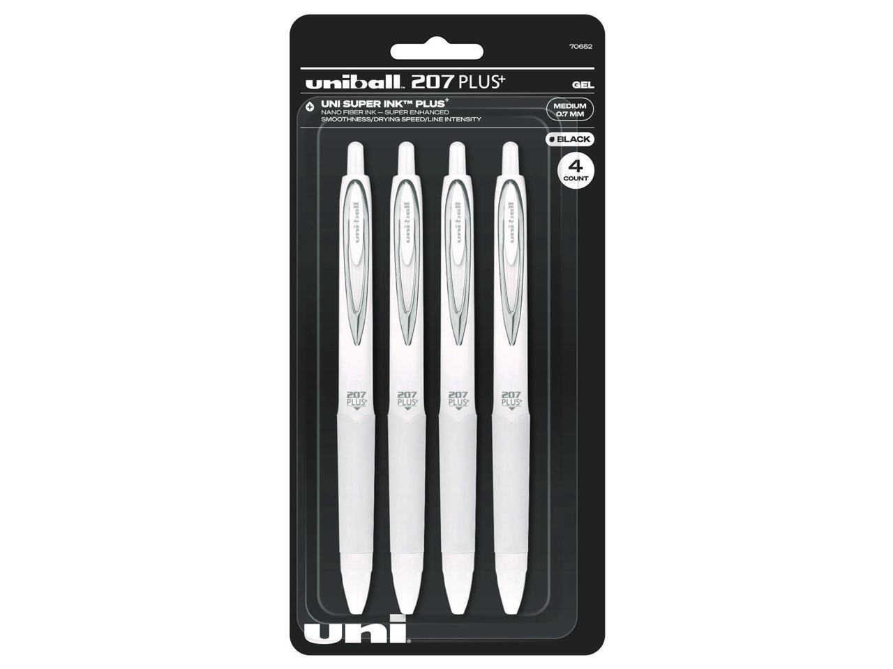207 Plus+ Gel Pen Retractable Medium 0.7 mm Black Ink White Barrel 4/Pack 70652